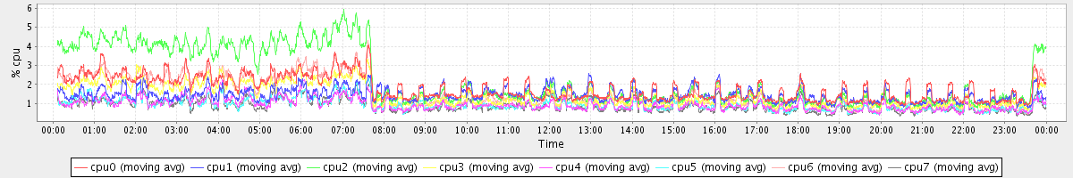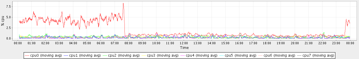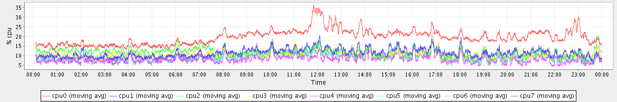 avg(cpu0) = 1.97 avg(cpu1) = 0.25 avg(cpu2) = 0.35 avg(cpu3) = 0.23 avg(cpu4) = 0.16 avg(cpu5) = 0.14 avg(cpu6) = 0.24 avg(cpu7) = 0.17