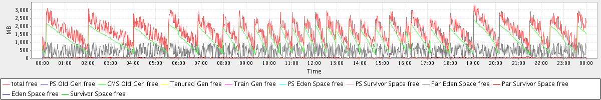 avg(total free) = 1714.27 avg(PS Old Gen free) = 0.00 avg(CMS Old Gen free) = 1215.14 avg(Tenured Gen free) = 0.00 avg(Train Gen free) = 0.00 avg(PS Eden Space free) = 0.00 avg(PS Survivor Space free) = 0.00 avg(Par Eden Space free) = 467.14 avg(Par Survivor Space free) = 31.99 avg(Eden Space free) = 0.00 avg(Survivor Space free) = 0.00