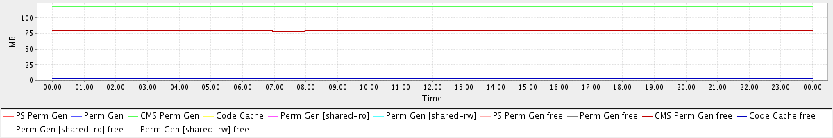 avg(PS Perm Gen) = 0.00 avg(Perm Gen) = 0.00 avg(CMS Perm Gen) = 118.40 avg(Code Cache) = 44.98 avg(Perm Gen [shared-ro]) = 0.00 avg(Perm Gen [shared-rw]) = 0.00 avg(PS Perm Gen free) = 0.00 avg(Perm Gen free) = 0.00 avg(CMS Perm Gen free) = 79.15 avg(Code Cache free) = 3.02 avg(Perm Gen [shared-ro] free) = 0.00 avg(Perm Gen [shared-rw] free) = 0.00