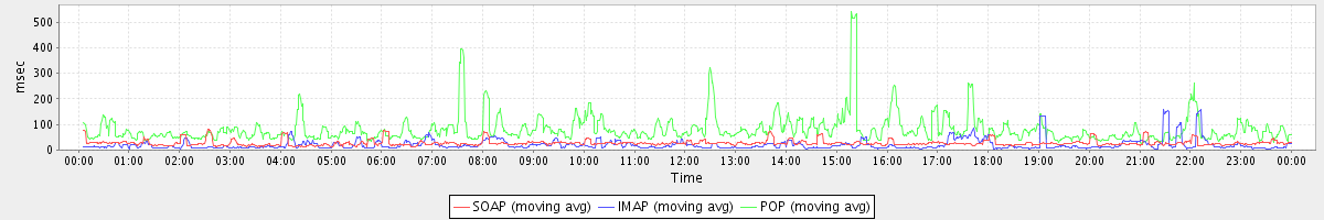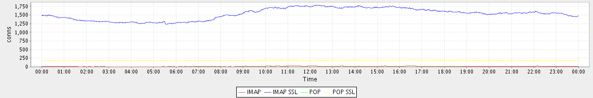 avg(IMAP) = 13.08 avg(IMAP SSL) = 1531.04 avg(POP) = 0.01 avg(POP SSL) = 187.44