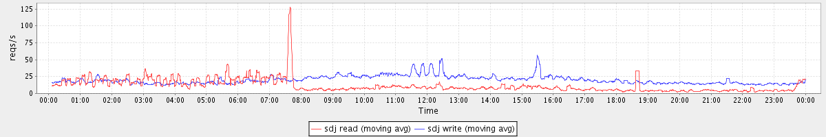 avg(sda1 read) = 22.09 avg(sda1 write) = 50.34