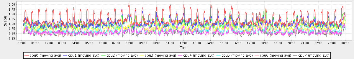avg(cpu0) = 1.22 avg(cpu1) = 1.05 avg(cpu2) = 1.02 avg(cpu3) = 0.85 avg(cpu4) = 0.61 avg(cpu5) = 0.67 avg(cpu6) = 0.63 avg(cpu7) = 0.57