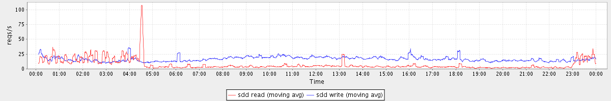 avg(dm-1 read) = 22.59 avg(dm-1 write) = 101.00