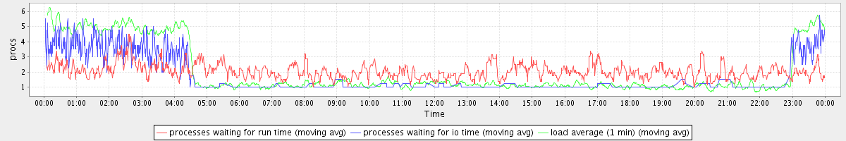 avg(processes waiting for run time) = 1.19 avg(processes waiting for io time) = 0.88 avg(load average (1 min)) = 2.00