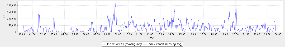 avg(Index writes) = 617.73 avg(Index reads) = 34645.59
