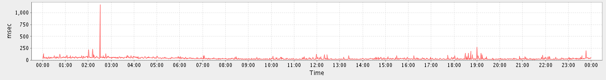 max(GetMsgRequest) = 36.00 max(SearchConvRequest) = 28.00 max(SearchRequest) = 51.00 max(GetFolderRequest) = 201.00 max(GetContactsRequest) = 651.00 max(MsgActionRequest.delete) = 42.00 max(NoOpRequest) = 54.00 max(SearchGalRequest) = 48.00 max(SyncRequest) = 312.00 max(GetAppointmentRequest) = 469.00