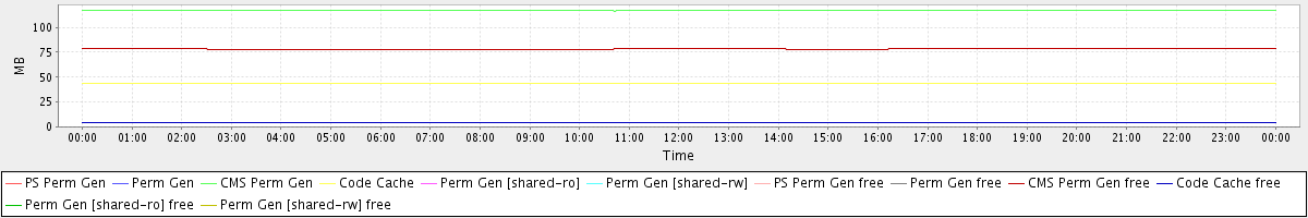 avg(PS Perm Gen) = 0.00 avg(Perm Gen) = 0.00 avg(CMS Perm Gen) = 117.00 avg(Code Cache) = 43.35 avg(Perm Gen [shared-ro]) = 0.00 avg(Perm Gen [shared-rw]) = 0.00 avg(PS Perm Gen free) = 0.00 avg(Perm Gen free) = 0.00 avg(CMS Perm Gen free) = 78.34 avg(Code Cache free) = 4.52 avg(Perm Gen [shared-ro] free) = 0.00 avg(Perm Gen [shared-rw] free) = 0.00