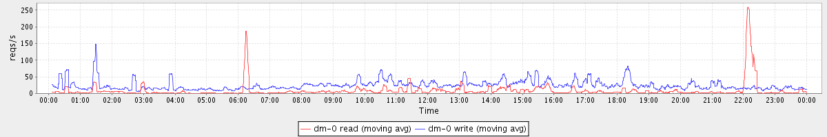 avg(dm-0 read) = 9.00 avg(dm-0 write) = 24.58