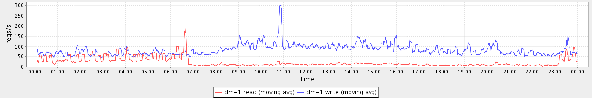 avg(dm-1 read) = 203.24 avg(dm-1 write) = 622.96