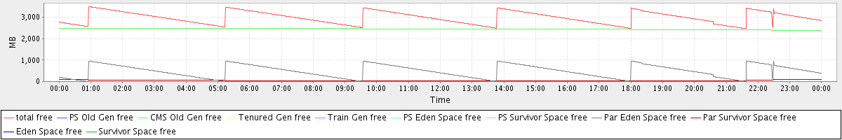 avg(total free) = 2980.96 avg(PS Old Gen free) = 0.00 avg(CMS Old Gen free) = 2444.57 avg(Tenured Gen free) = 0.00 avg(Train Gen free) = 0.00 avg(PS Eden Space free) = 0.00 avg(PS Survivor Space free) = 0.00 avg(Par Eden Space free) = 484.22 avg(Par Survivor Space free) = 52.18 avg(Eden Space free) = 0.00 avg(Survivor Space free) = 0.00