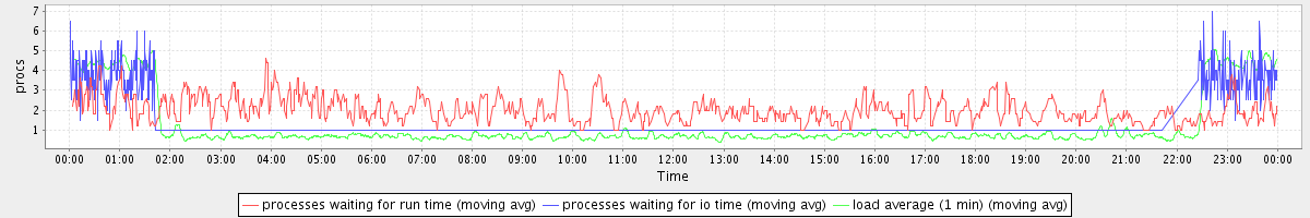 avg(processes waiting for run time) = 0.83 avg(processes waiting for io time) = 0.50 avg(load average (1 min)) = 1.19