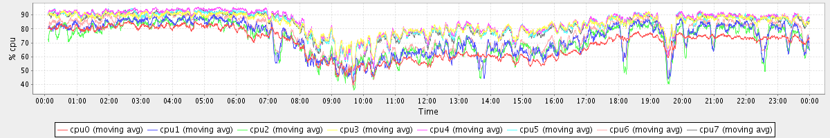 avg(cpu0) = 69.57 avg(cpu1) = 73.15 avg(cpu2) = 71.83 avg(cpu3) = 83.65 avg(cpu4) = 84.94 avg(cpu5) = 83.61 avg(cpu6) = 75.53 avg(cpu7) = 83.10