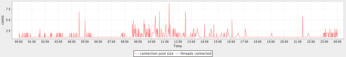 avg(connection pool size) = 0.71 avg(threads connected) = 0.00