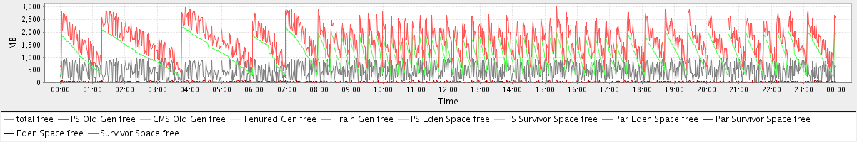 avg(total free) = 1672.68 avg(PS Old Gen free) = 0.00 avg(CMS Old Gen free) = 1154.44 avg(Tenured Gen free) = 0.00 avg(Train Gen free) = 0.00 avg(PS Eden Space free) = 0.00 avg(PS Survivor Space free) = 0.00 avg(Par Eden Space free) = 484.13 avg(Par Survivor Space free) = 34.11 avg(Eden Space free) = 0.00 avg(Survivor Space free) = 0.00