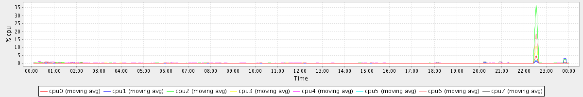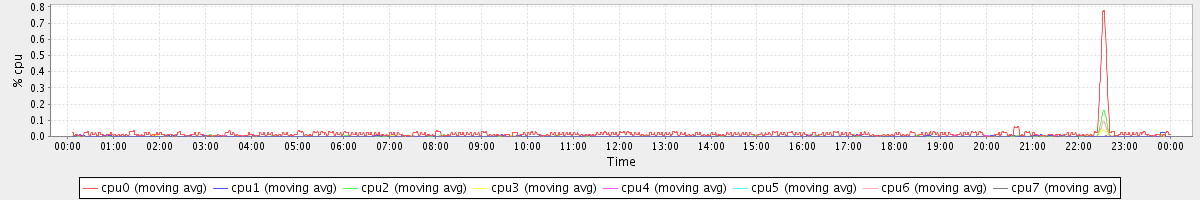 avg(cpu0) = 1.14 avg(cpu1) = 0.81 avg(cpu2) = 0.74 avg(cpu3) = 0.74 avg(cpu4) = 0.54 avg(cpu5) = 0.50 avg(cpu6) = 0.39 avg(cpu7) = 0.38