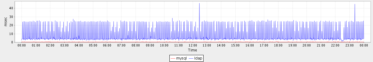 avg(mysql) = 0.22 avg(ldap) = 7.48
