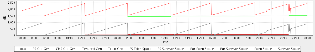 avg(total) = 2022.60 avg(PS Old Gen) = 0.00 avg(CMS Old Gen) = 1454.37 avg(Tenured Gen) = 0.00 avg(Train Gen) = 0.00 avg(PS Eden Space) = 0.00 avg(PS Survivor Space) = 0.00 avg(Par Eden Space) = 505.20 avg(Par Survivor Space) = 63.04 avg(Eden Space) = 0.00 avg(Survivor Space) = 0.00
