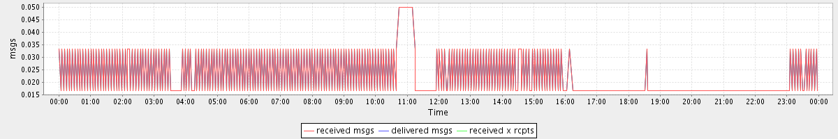 avg(received msgs) = 0.01 avg(delivered msgs) = 0.01 avg(received x rcpts) = 0.01