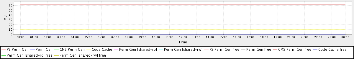 avg(PS Perm Gen) = 0.00 avg(Perm Gen) = 0.00 avg(CMS Perm Gen) = 65.66 avg(Code Cache) = 10.36 avg(Perm Gen [shared-ro]) = 0.00 avg(Perm Gen [shared-rw]) = 0.00 avg(PS Perm Gen free) = 0.00 avg(Perm Gen free) = 0.00 avg(CMS Perm Gen free) = 62.34 avg(Code Cache free) = 0.11 avg(Perm Gen [shared-ro] free) = 0.00 avg(Perm Gen [shared-rw] free) = 0.00