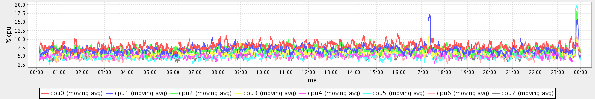 avg(cpu0) = 1.24 avg(cpu1) = 0.84 avg(cpu2) = 0.74 avg(cpu3) = 0.68 avg(cpu4) = 0.53 avg(cpu5) = 0.44 avg(cpu6) = 0.46 avg(cpu7) = 0.44