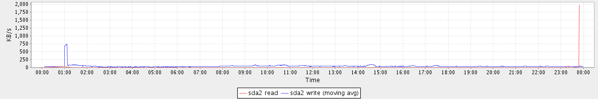 avg(sda2 read) = 0.74 avg(sda2 write) = 41.41