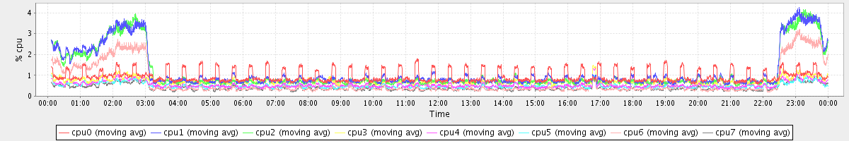 avg(cpu0) = 0.02 avg(cpu1) = 0.07 avg(cpu2) = 0.07 avg(cpu3) = 0.00 avg(cpu4) = 0.01 avg(cpu5) = 0.00 avg(cpu6) = 0.05 avg(cpu7) = 0.00