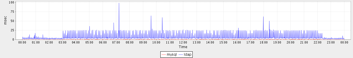 avg(mysql) = 0.19 avg(ldap) = 6.87