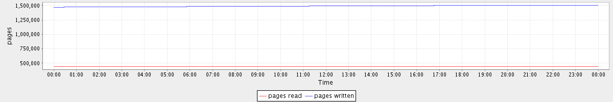 avg(pages read) = 442657.00 avg(pages written) = 1491091.68