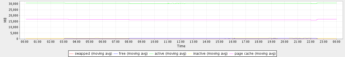 avg(swapped) = 0.23 avg(free) = 304.01 avg(active) = 30503.11 avg(inactive) = 576.32 avg(page cache) = 16488.30