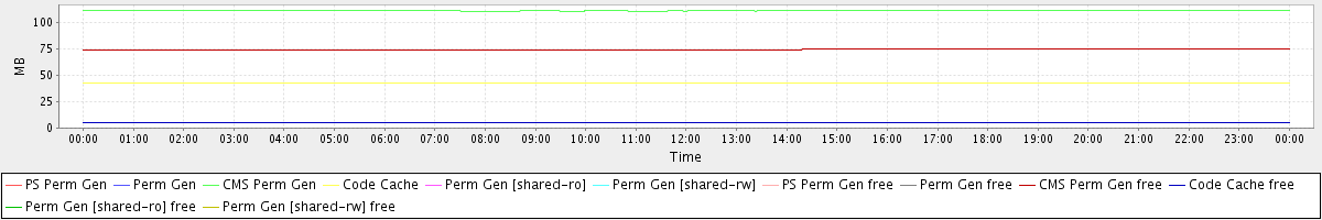 avg(PS Perm Gen) = 0.00 avg(Perm Gen) = 0.00 avg(CMS Perm Gen) = 111.13 avg(Code Cache) = 42.99 avg(Perm Gen [shared-ro]) = 0.00 avg(Perm Gen [shared-rw]) = 0.00 avg(PS Perm Gen free) = 0.00 avg(Perm Gen free) = 0.00 avg(CMS Perm Gen free) = 74.32 avg(Code Cache free) = 4.83 avg(Perm Gen [shared-ro] free) = 0.00 avg(Perm Gen [shared-rw] free) = 0.00