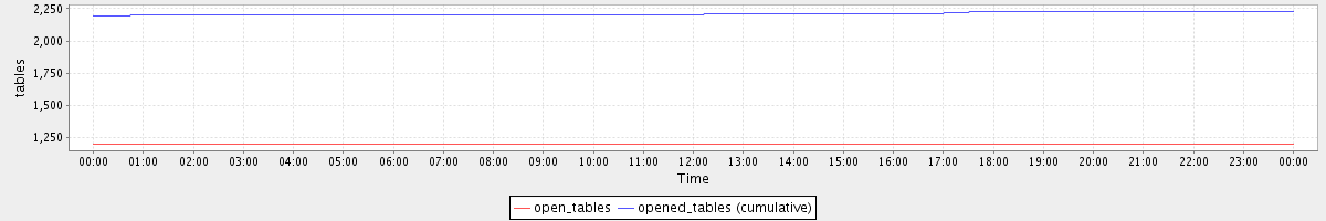 avg(open_tables) = 1200.00 avg(opened_tables (cumulative)) = 2211.45