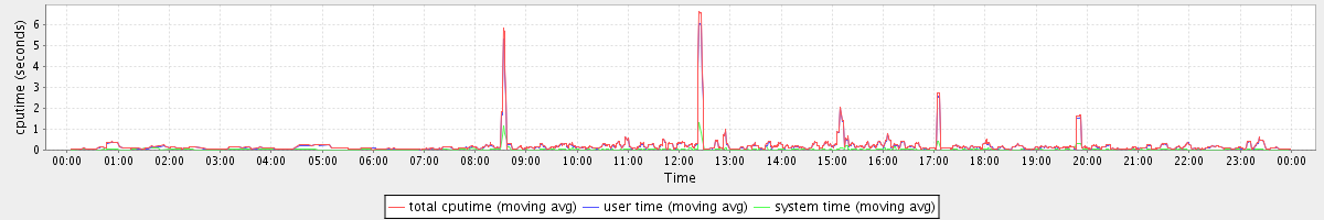 avg(total cputime) = 0.13 avg(user time) = 0.12 avg(system time) = 0.01