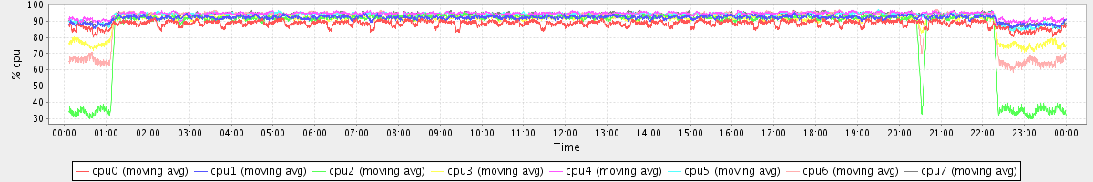 avg(cpu0) = 88.39 avg(cpu1) = 91.90 avg(cpu2) = 85.06 avg(cpu3) = 89.98 avg(cpu4) = 94.24 avg(cpu5) = 93.29 avg(cpu6) = 90.88 avg(cpu7) = 93.82