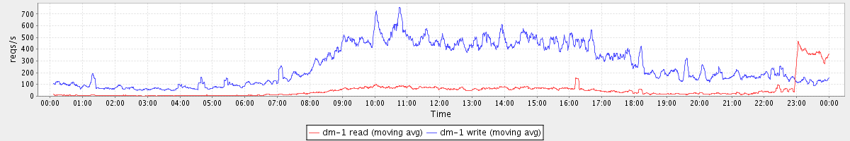 avg(dm-1 read) = 1203.46 avg(dm-1 write) = 1462.63