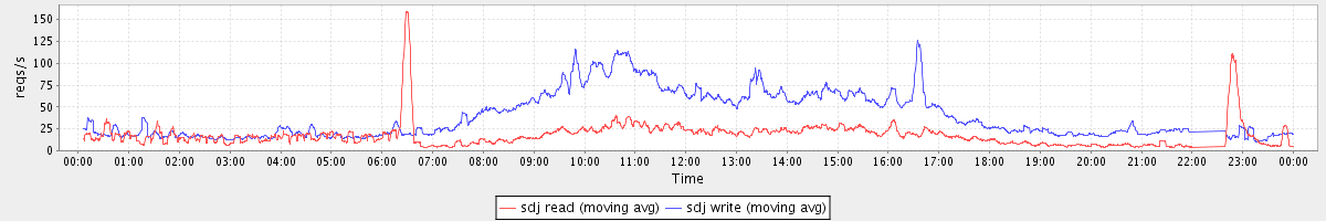 avg(sda read) = 2.46 avg(sda write) = 3.29