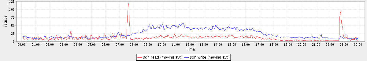 avg(sda read) = 26.86 avg(sda write) = 87.87