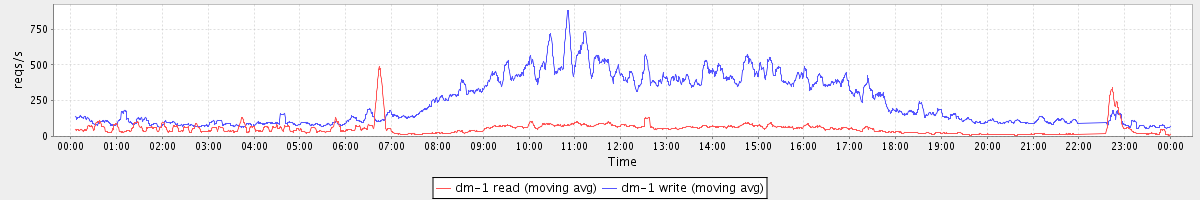 avg(dm-1 read) = 632.11 avg(dm-1 write) = 1351.50