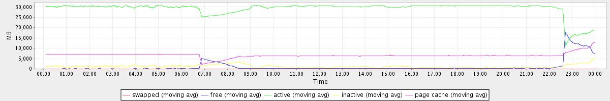 avg(swapped) = 0.23 avg(free) = 1070.10 avg(active) = 29159.19 avg(inactive) = 1217.50 avg(page cache) = 6591.15