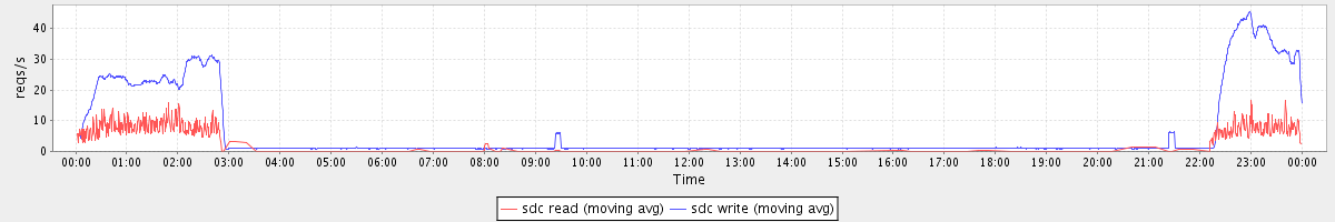 avg(sda read) = 43.81 avg(sda write) = 43.58