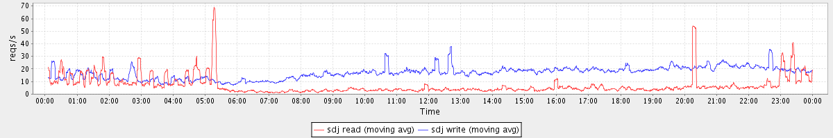 avg(sda1 read) = 19.92 avg(sda1 write) = 44.21