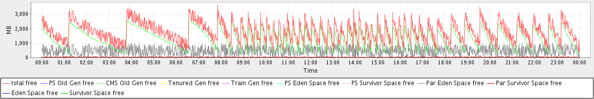 avg(total free) = 1798.99 avg(PS Old Gen free) = 0.00 avg(CMS Old Gen free) = 1294.58 avg(Tenured Gen free) = 0.00 avg(Train Gen free) = 0.00 avg(PS Eden Space free) = 0.00 avg(PS Survivor Space free) = 0.00 avg(Par Eden Space free) = 473.22 avg(Par Survivor Space free) = 31.20 avg(Eden Space free) = 0.00 avg(Survivor Space free) = 0.00