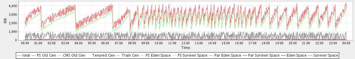 avg(total) = 2906.44 avg(PS Old Gen) = 0.00 avg(CMS Old Gen) = 2325.42 avg(Tenured Gen) = 0.00 avg(Train Gen) = 0.00 avg(PS Eden Space) = 0.00 avg(PS Survivor Space) = 0.00 avg(Par Eden Space) = 491.66 avg(Par Survivor Space) = 89.36 avg(Eden Space) = 0.00 avg(Survivor Space) = 0.00