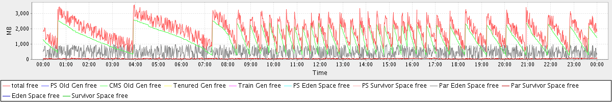 avg(total free) = 1885.73 avg(PS Old Gen free) = 0.00 avg(CMS Old Gen free) = 1356.00 avg(Tenured Gen free) = 0.00 avg(Train Gen free) = 0.00 avg(PS Eden Space free) = 0.00 avg(PS Survivor Space free) = 0.00 avg(Par Eden Space free) = 482.84 avg(Par Survivor Space free) = 46.89 avg(Eden Space free) = 0.00 avg(Survivor Space free) = 0.00