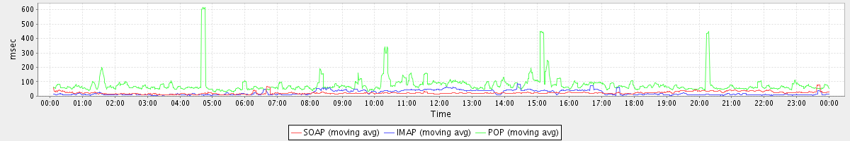 Host zm03.stanford.edu: Mailboxd: Response Time by Client Protocol