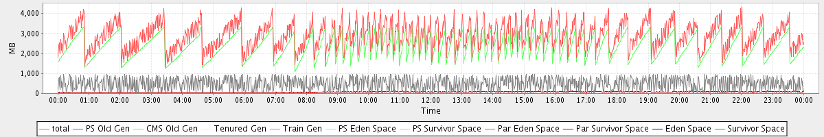 avg(total) = 2895.03 avg(PS Old Gen) = 0.00 avg(CMS Old Gen) = 2337.05 avg(Tenured Gen) = 0.00 avg(Train Gen) = 0.00 avg(PS Eden Space) = 0.00 avg(PS Survivor Space) = 0.00 avg(Par Eden Space) = 490.12 avg(Par Survivor Space) = 67.86 avg(Eden Space) = 0.00 avg(Survivor Space) = 0.00