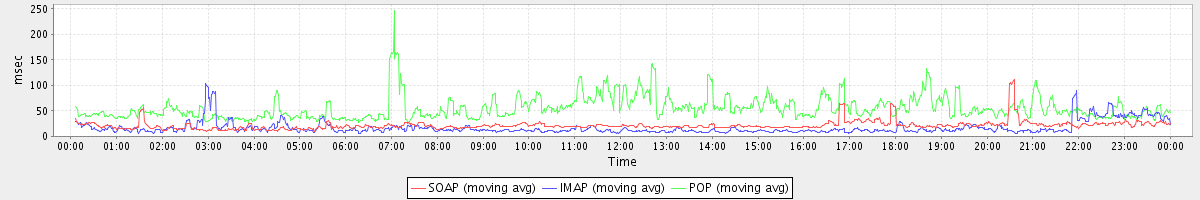 Host zm07.stanford.edu: Mailboxd: Response Time by Client Protocol