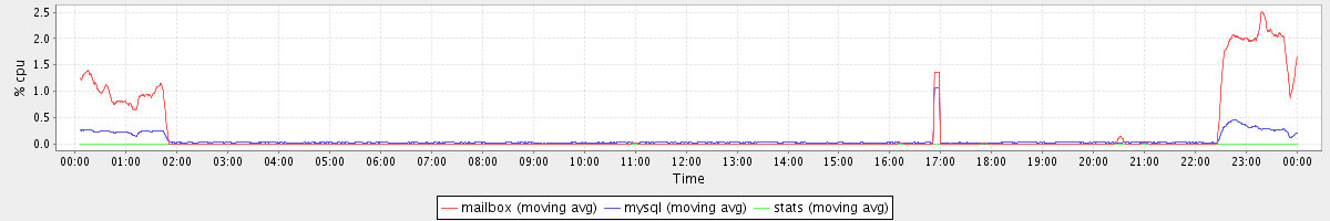 avg(mailbox) = 0.20 avg(mysql) = 0.07 avg(stats) = 0.00