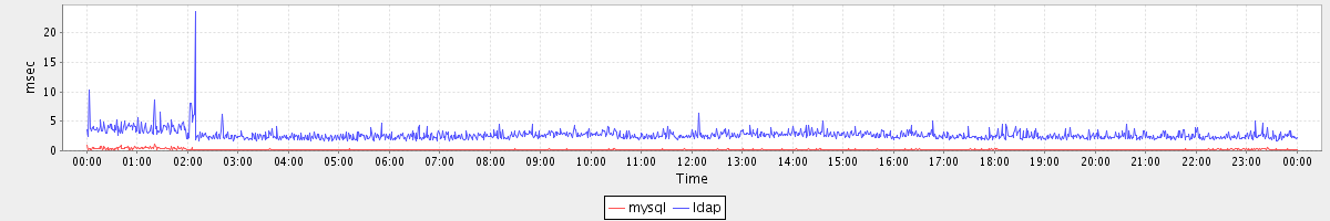 avg(mysql) = 0.21 avg(ldap) = 2.72