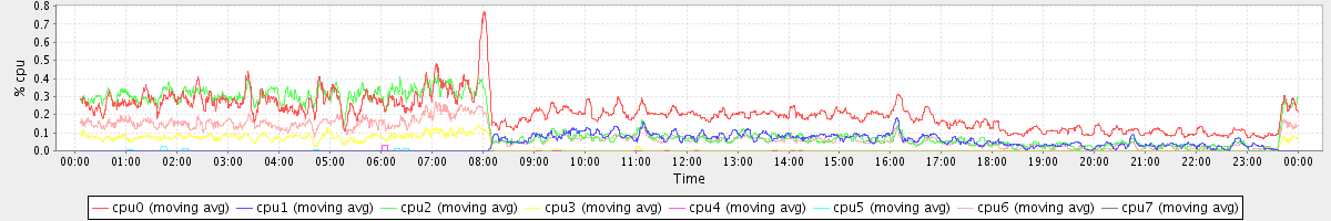 avg(cpu0) = 0.21 avg(cpu1) = 0.04 avg(cpu2) = 0.14 avg(cpu3) = 0.03 avg(cpu4) = 0.00 avg(cpu5) = 0.00 avg(cpu6) = 0.09 avg(cpu7) = 0.00
