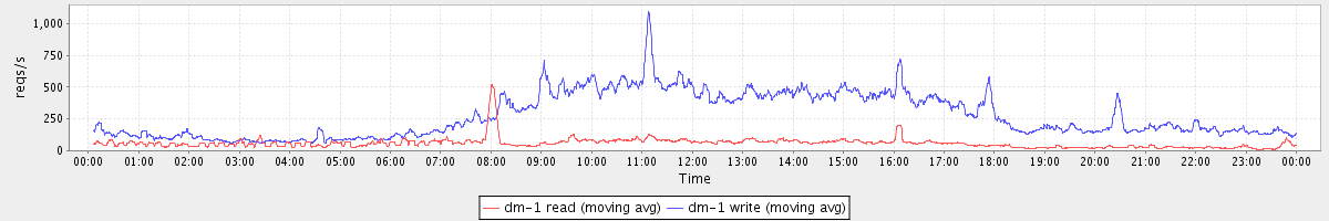 avg(dm-1 read) = 640.13 avg(dm-1 write) = 1509.48
